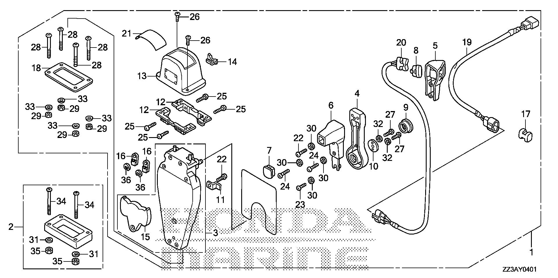 Mid - Large Outboard Engines (25 - 250hp) BF BF60 BF60AK1 LRTA BBFJ-1100001-9999999 REMOTE CONTROL BOX (TOP MOUNT SINGLE TYPE) (L.) - Pirie Marine